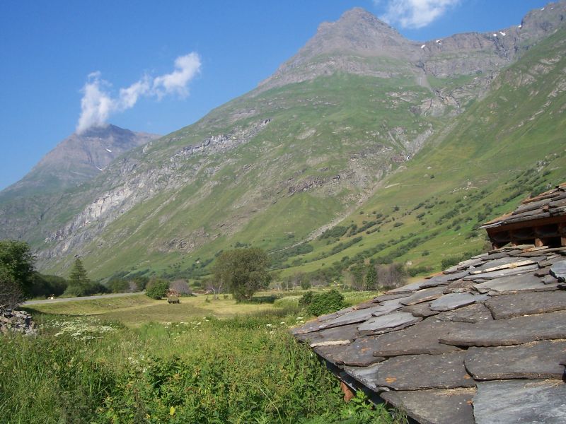 ![]() Noch ein kleiner Pass Col de Mont Cenis (2083m) war auf dem heutigen Program ! Freilich musste ich erst bergabfahren, dann wieder zum Pass hinauffahren. Erst danach kam die lange und steile Bergabfahrt. So konnte ich wieder fitt ausgesehen ins Kemping von Lanslebourg einrollen. Auf diesem lieblichen kleinem Kurort dachte ich mir ein Essen bei einem Glass Stella Artois verdien zu haben. Aus dem Fenster beobachtete ich den gemächlichen Verkehr des kleinen Erholungsortes. Sechster Tag Nächsten Tag früh setzte ich meine Radtour optimistisch trotz des ersten Höhenunterschiedes von 1925 m bei Sonnenschein.. Ich fuhr an Häusern alten Styles vorbei,manchmal von anderen Radlern mit Gepäck begrüsst. Nach dem letztem Dorf im Tal kam wieder die erbarmungslos steile Ansteigung. Motorradfahrer unterhielten sich mit einem französischem Bauer , dort hielt ich auch eine Pause nicht zuletzt wegen der herrlichen Aussicht. Ursprünglich hielten sie auch wegen der Sicht an. Er hütete einige Kühe, aber bald stellte sich heraus,dass er Appartements in Hospice hat, und von diesen ernährt er seine Familie. Obwohl ich ihn später in einem höher gelegenen Tal traf, wo eine grössere Kuhherde war. Dieses Tal wurde von Dreitausendern schützend umgeben. Col de L_Iseran 2770 m, der höhstgeglegene Strassenpass, wo ich überhaupt war.