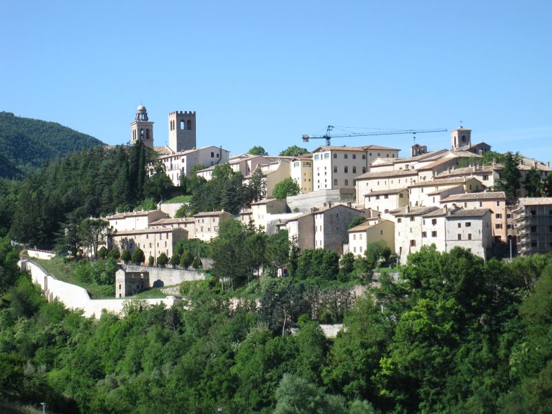 Sankt Franz von Assisi ehrend die Kirche und das Kloster von Sanctuario della Verna Siesta mit Tagebuchschreiben Ein neuer Pass Valico dello Spino auf 1055 m. Abweichslungsreiche Landschaft des Apennin. VIII. Tag 29.05. 128 km Camping La Montesca-5km-Citta di Castello-19km-Bocca Serriola-9km-Apecchio- 4km Colombara -8km-Serrevalle di Carda-8km-Monte Nerone**(BIG, 1498m, Höhenunterschied:1022m)-8km-Serravalle di Carda-9km-Pianello, Moria, Palcano, Pontedazzo-11km-Cantiano-12km-Scheggia-16km- Fossato di Vico-7km-Cima Mutali**-(BIG,1083m, Höhenunterschied.:570m)- 7km- Fossato di Vico -Gualdo Tadino-7km-anstelle des Campings in Valsorda Übernachtung in einer neuen komfortablen Herberge für 20 € pro Person. Ausblick nahe La Montesca Zeltplatz Citta di Castello-ra. Die erbitterten letzten Kilometer hinauf auf Cima Mutali. Die riesige Blumenwiese hat mich "entschädigt". Verdienete Pause. Abfahrt mit schöner Aussicht. Ausblick von Monte Nerone. Pianello, die kleine Stadt. Pass von Valico_di_Scheggia auf 632 m. IX. Tag 30.05. 110 km Valsorda-6km-Gualdo Tadino-14km-Nocera Umbra-7km-Bagnara-10km-Colfiorito-15km-Pieve Torina-16km-Visso(153E6)-8km-Castelsantangelo s. Nera(163A4)-15km-Casteluccio-8km-Forca di Presta**(BIG, 1540m, Höhenunterschied.:938m)-10km-Arquata del Tronto-26km-Amatrice(Rieti)-5km-Localita Retrosi. Abfahrt am Morgen von Valsorda. Berghang im Morgensonnenschein. Erneut in der Stadt von Gualdo Tadino. Nocera , die Stadt gebaut auf dem Berg. In den bezauberden Bergen des Apennin , auf den Einöden der Forca di Presta musste man auch mit dem Wind kämpfen. Laci zieht sich aus. Endlich auf der Höhe, Forca di Presta und die Aussicht